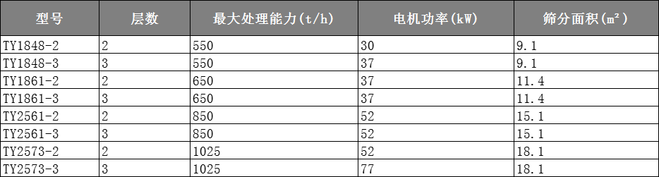 TY 系列振動(dòng)篩為軸偏心橢圓運(yùn)動(dòng)軌跡,確保物料在各種物料條件下實(shí)現(xiàn)高效、可靠、精確的分級(jí) 。